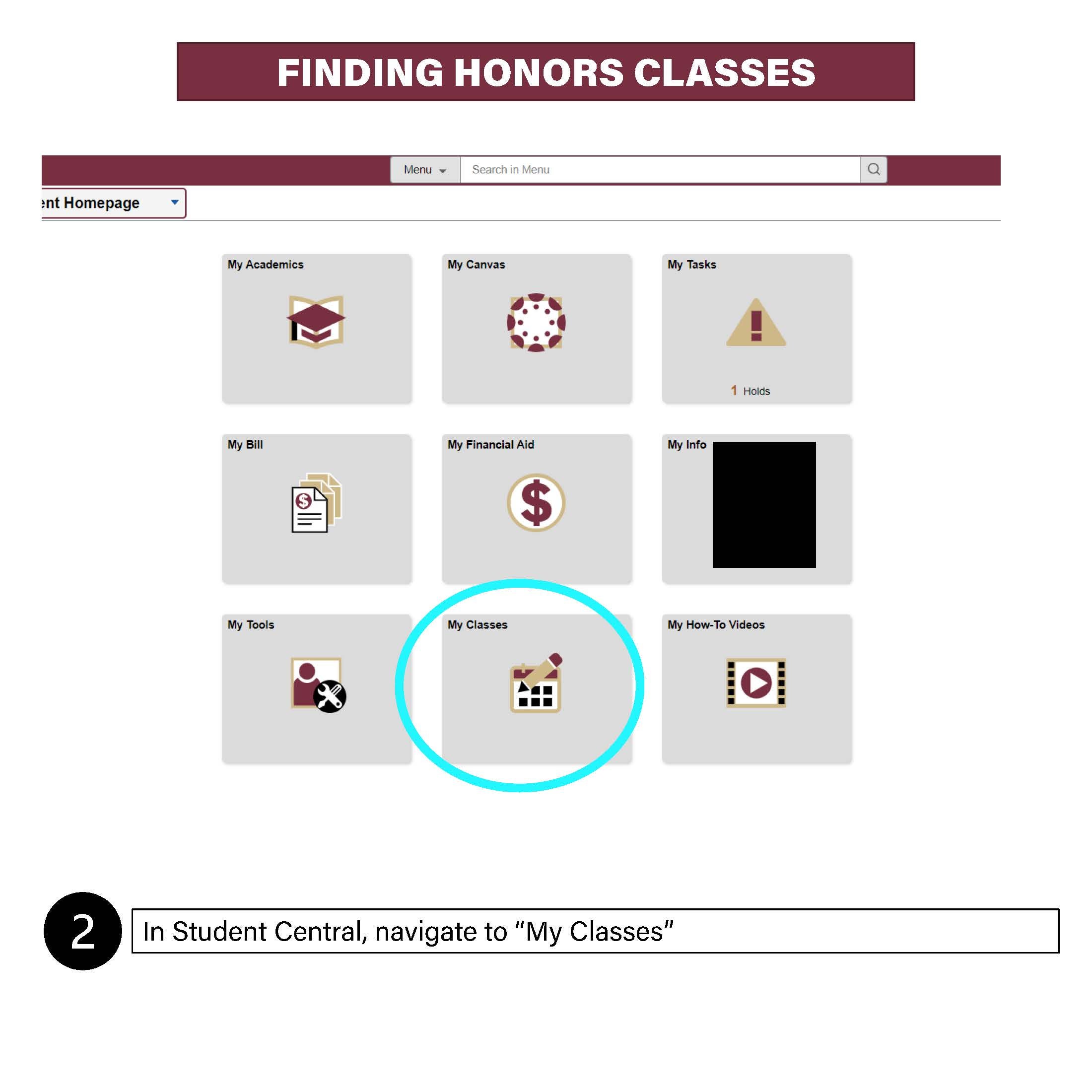 2. Next, click on the "My Classes" tile on the FSU Student Homepage.