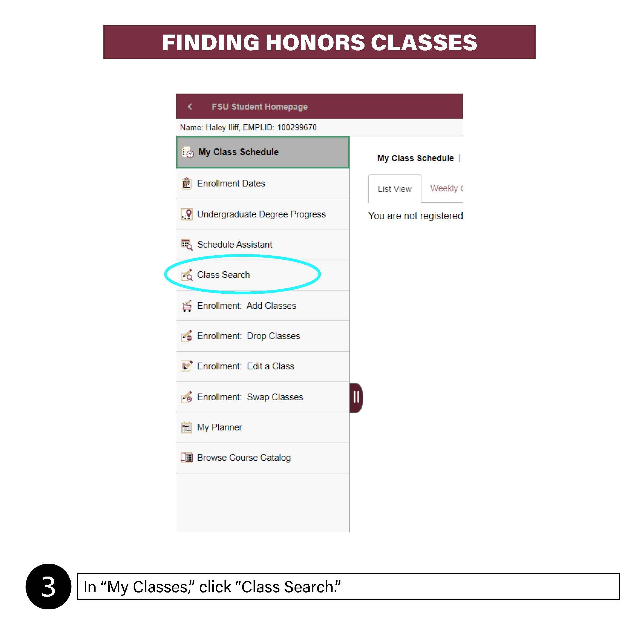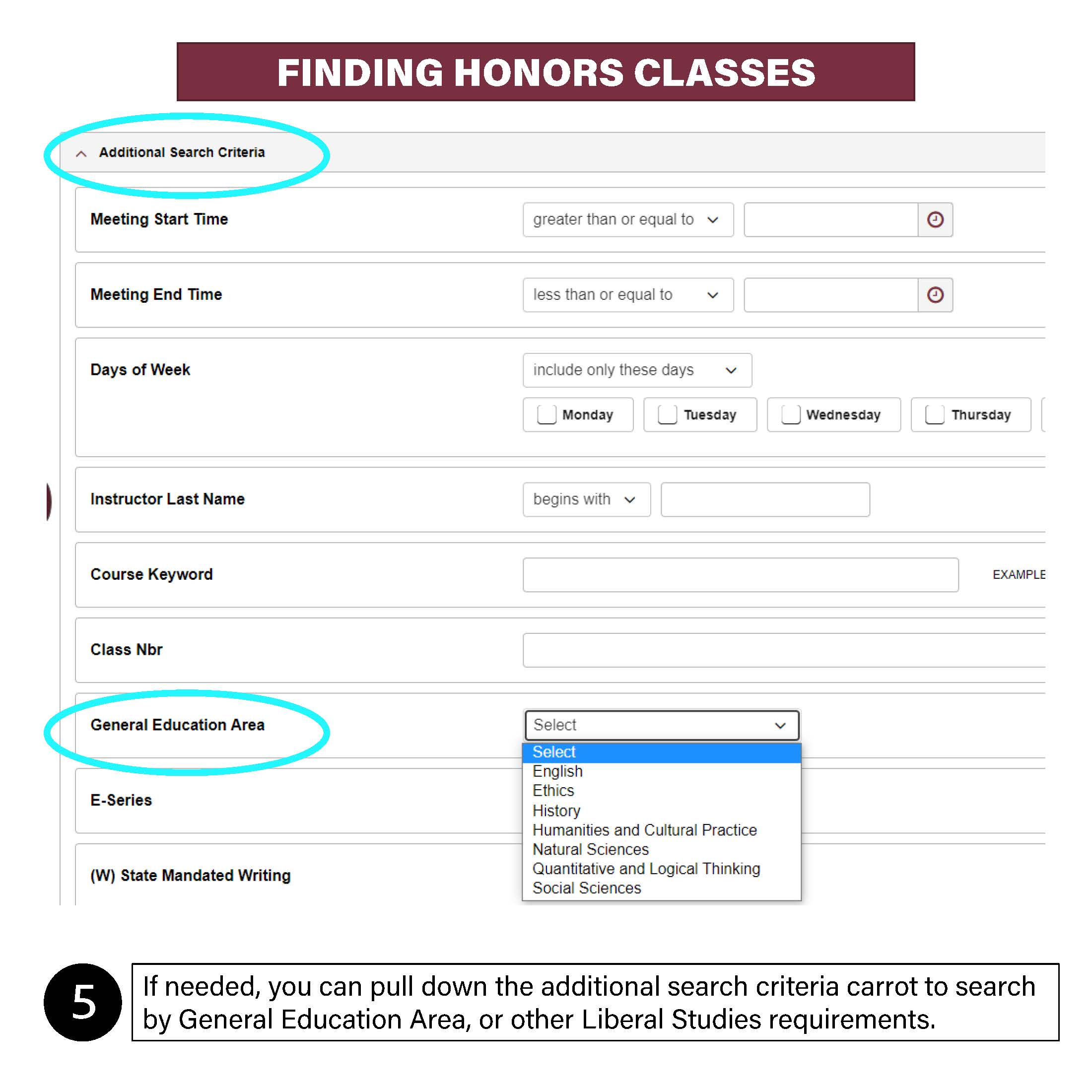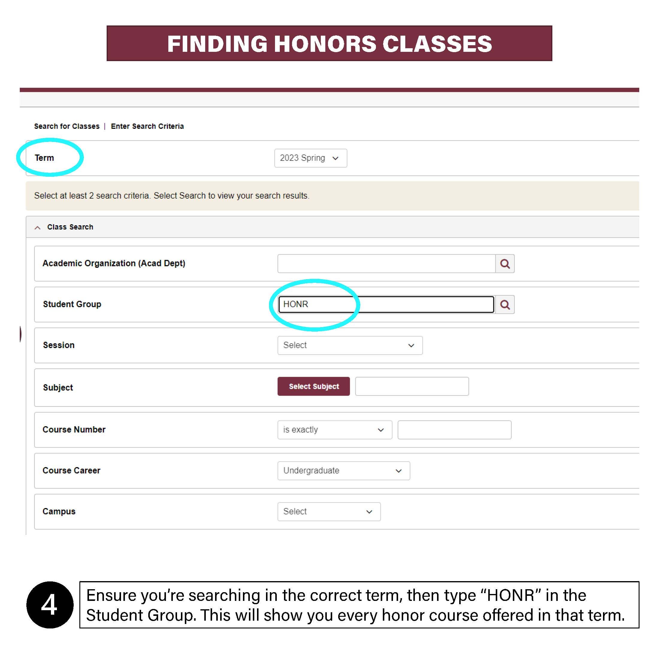 When searching for an Honors or Honors Experience course, while in the myFSU Portal:
